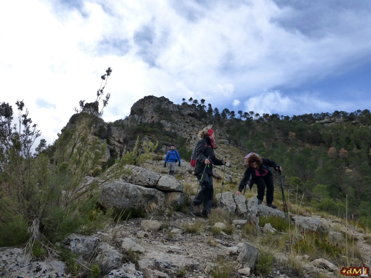 A la altura más o menos de cuando debía estar la Fuente Fría, que no vimos, la pista que llevábamos se convirtió en una bonita senda que nos fue subiendo por el barranco hasta enlazar con la pista de la parte superior.