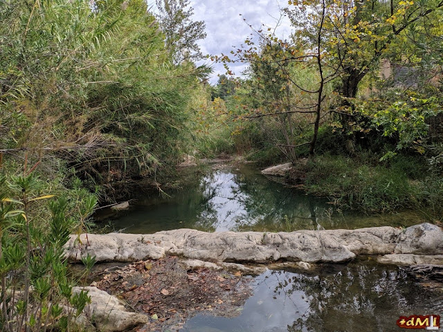 Llegamos a una pista donde los escaladores suelen aparcar y continuamos por la derecha bajando hasta el cauce del río. Allí vimos unas pozas muy atractivas donde no pudimos resistirnos a bañarnos.
